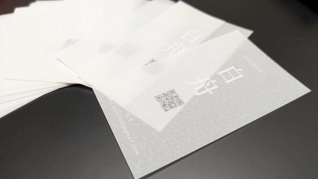 かざすとサイトが開くギミックの旧名刺もお気に入りだったのですが、使い方がわからないという意見も多く、今回からは普通にQRコードにしました。