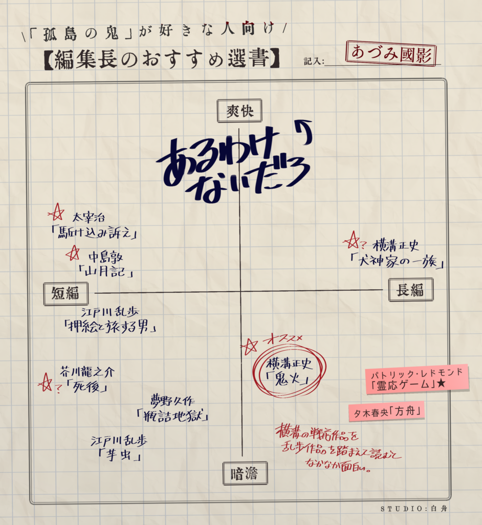 ○編集長による「孤島の鬼」が好きな人向けおすすめ選書